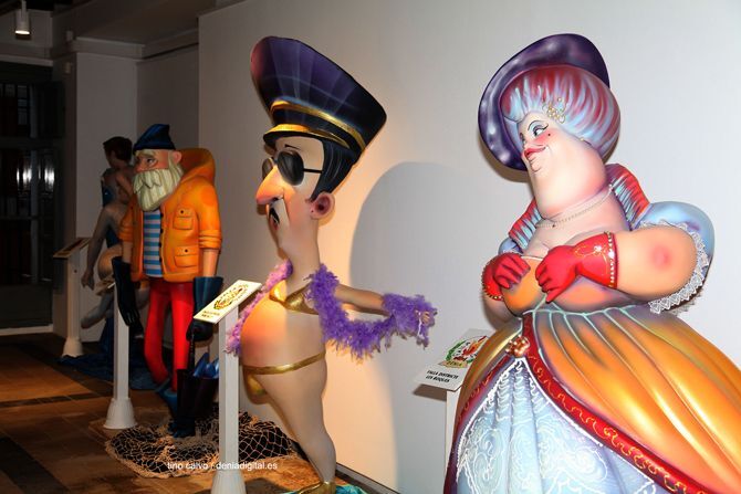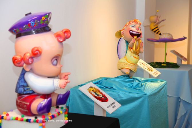 La mecha de las fallas ya arde en Dénia y desde este sábado está abierta la exposición del ninot 2022 con una parte de los monumentos de los 11 distritos falleros.