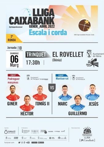 Los equipos de Pedreguer y Montserrat se enfrentan este domingo 6 de marzo en el trinquet El Rovellet de Dénia en una nueva jornada de la Liga Caixabank de Escala i Corda.