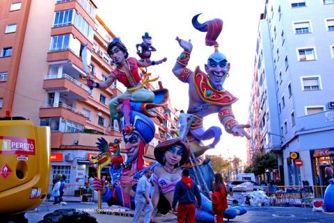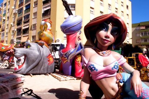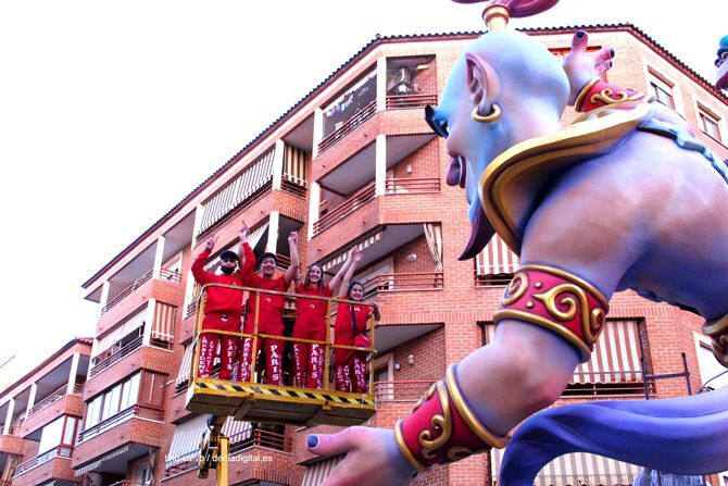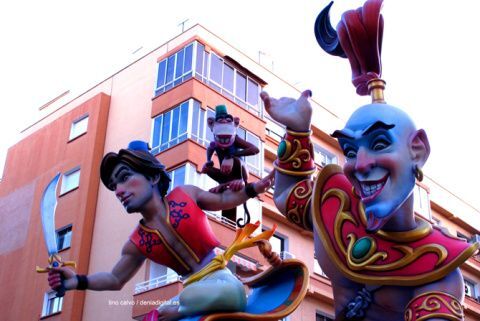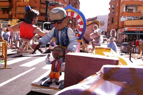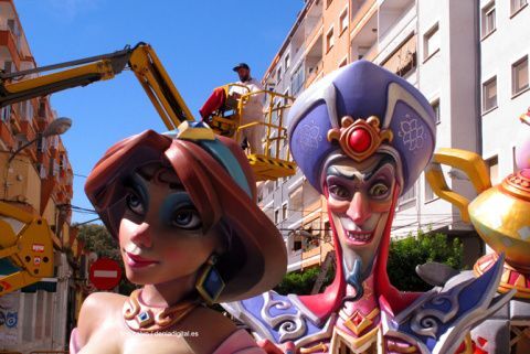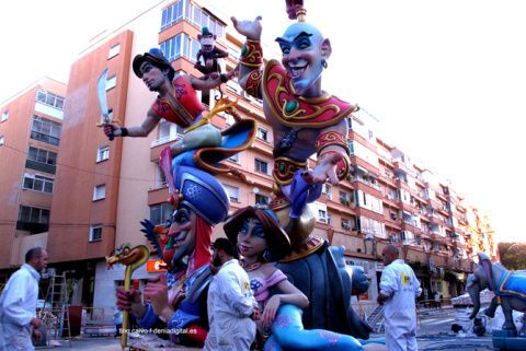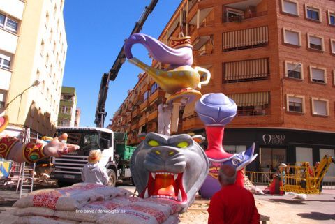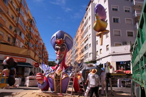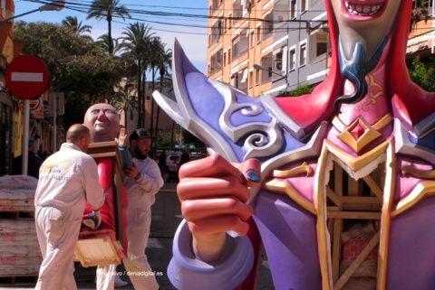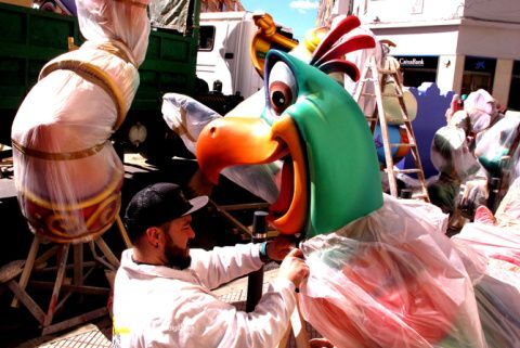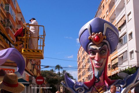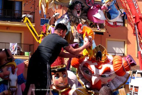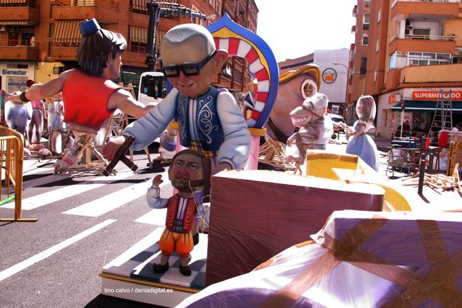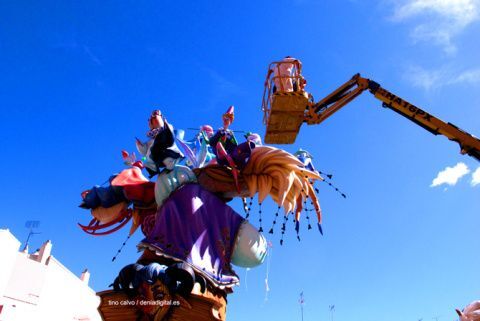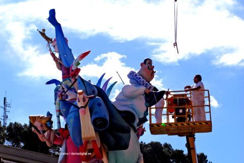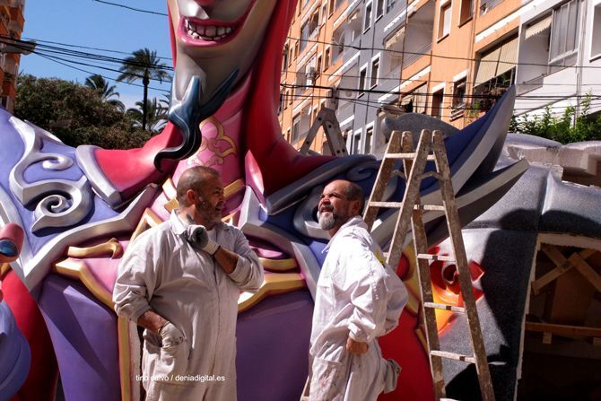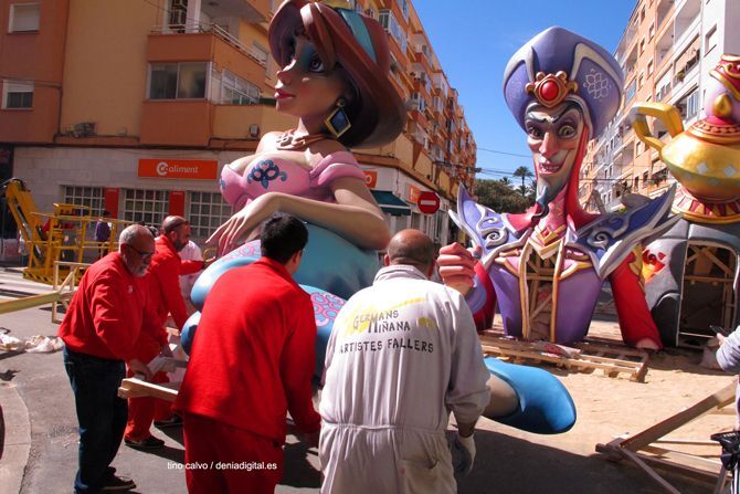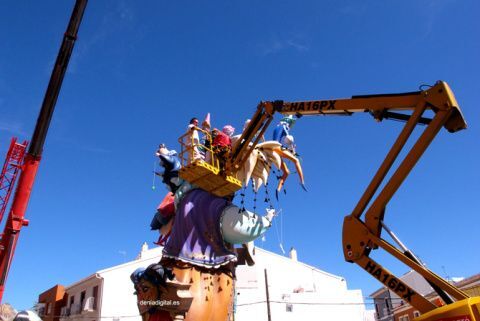 El buen tiempo registrado este sábado ha animado a los falleros en los trabajos para la planta de los monumentos en los diferentes distritos de Dénia.