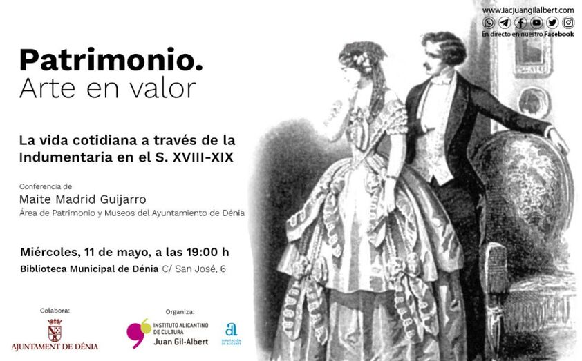 El Instituto de Cultura Juan Gil-Albert ha organizado una nueva sesión del ciclo ‘Patrimonio. Arte en Valor’ a cargo de Maite Madrid bajo el título ‘Indumentaria del siglo XVIII-XIX en la Marina Alta’. La cita será este miércoles a las 19:00 horas en la Biblioteca Municipal de Dénia.