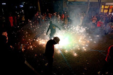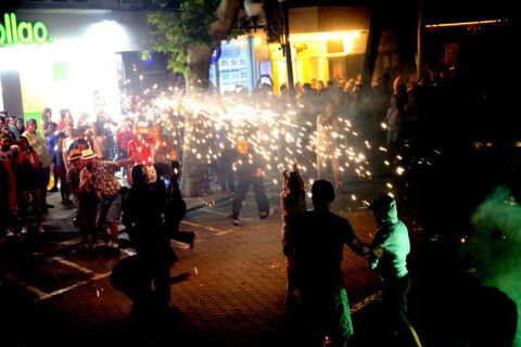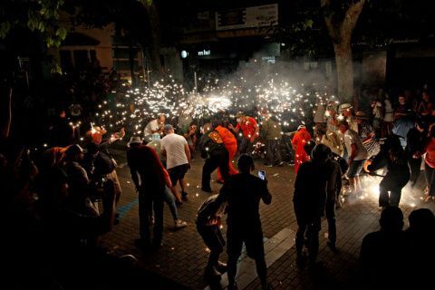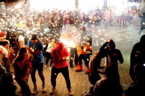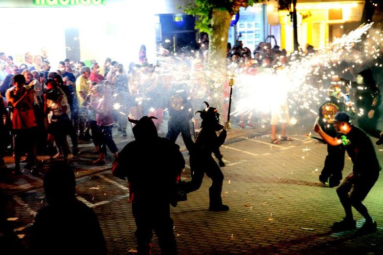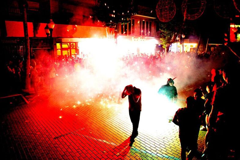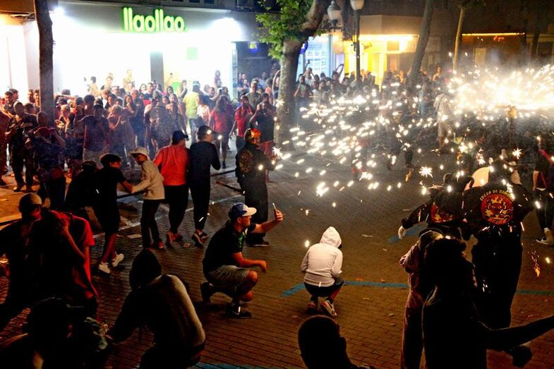 Un gran correfoc iluminó toda la calle Marqués de Campo durante la noche de ayer en uno de los momentos vinculados con el fuego y la fiesta más importantes de la Festa Major de Dénia.