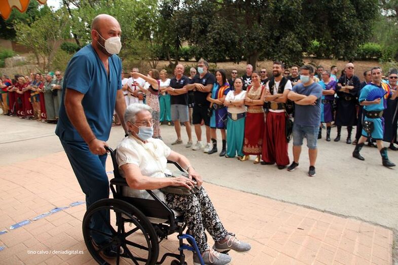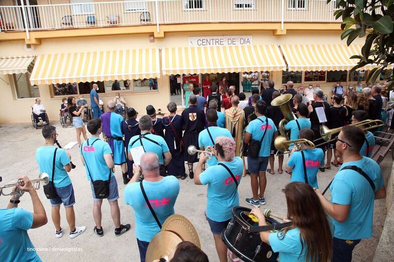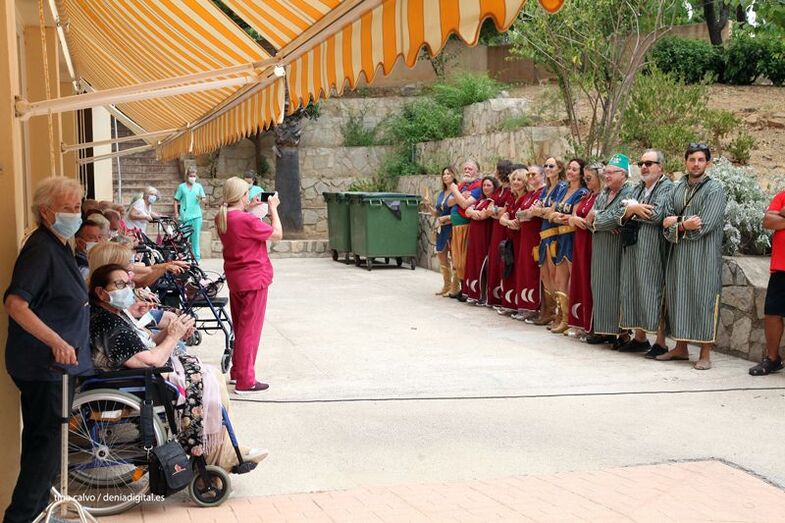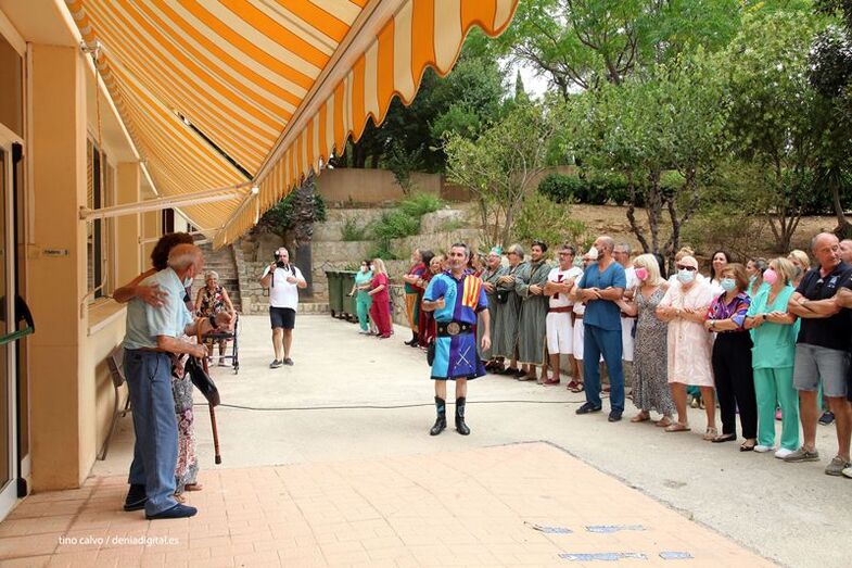 Los Moros y Cristianos de Dénia viven los días grandes de la fiesta y como no podía ser de otra manera, este sábado los capitanes y los representantes de las filaes han visitado la residencia Santa Llúcia para trasladar a los internos un poco del espíritu festivo.
