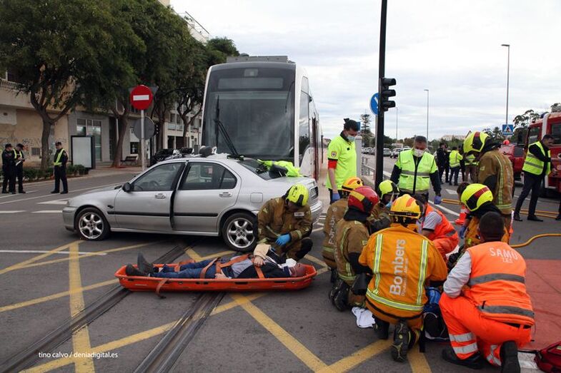 La simulación, organizada por la Unidad de Seguridad y Protección Civil de FGV, ha consistido en el choque entre un tren 5.000, el cual realizará el servicio de Línea 9 de TRAM entre Dénia y Teulada, y un coche. El accidente ficticio ha tenido lugar en la rotonda situada en la avenida Joan Fuster en confluencia con la avenida de Juan Chabás y la calle Turia.
