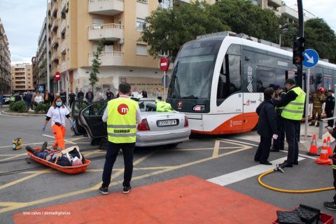 Ferrocarrils de la Generalitat Valenciana (FGV) ha realizado este martes un simulacro de colisión entre uno de los nuevos trenes electrodiésel con un vehículo en la zona tranviaria urbana de la Línea 9 de TRAM Alicante-Dénia. El objetivo de esta actuación es conocer la capacidad de respuesta coordinada entre el FGV y los operativos externos en caso de emergencia dentro del Plan de Autoprotección.