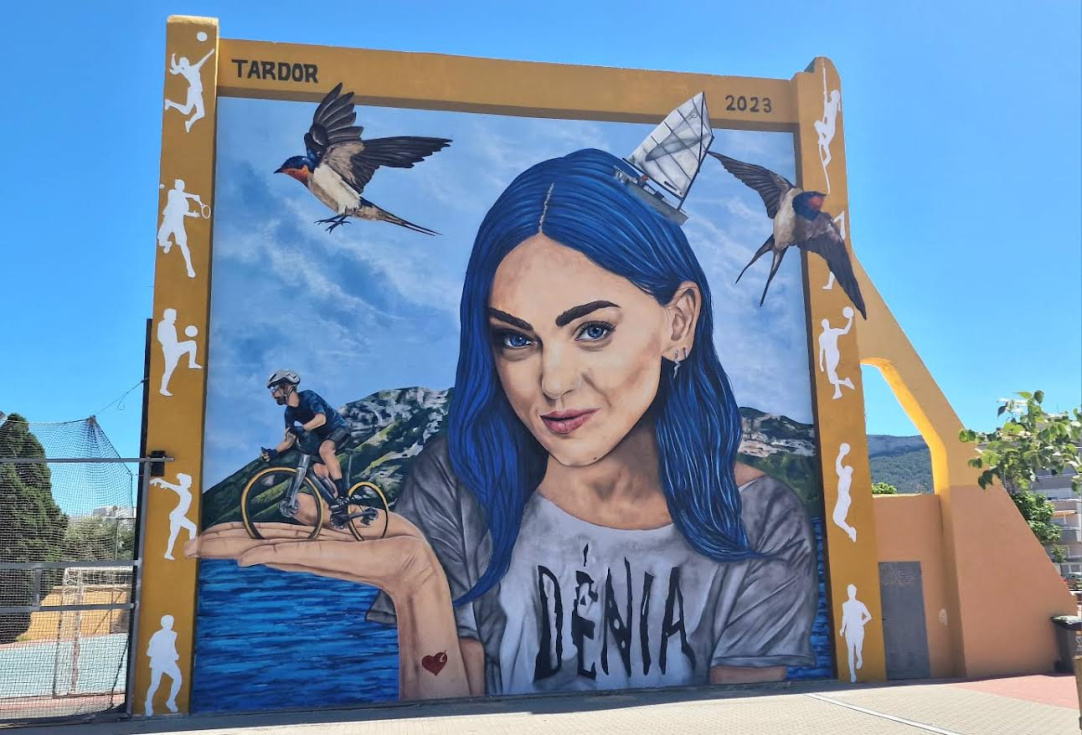 El encargado de diseñar y ejecutar la obra ha sido el artista deniero Tardor y se ha ubicado en uno de los muros del polideportivo municipal de Dénia. La imagen de gran tamaño (120 metros cuadrados, 10 metros de alto por 12 de largo), realizada al estilo grafiti con aerosoles, mezcla elementos propios del mar y la naturaleza del parque natural con la figura de un ciclista y una joven, con el Montgó y el Mediterráneo de fondo.