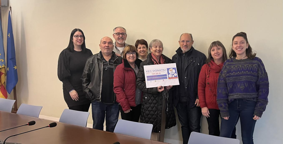 Este miércoles se realizó la entrega a Cáritas Parroquial de Pedreguer de un cheque por el importe de 747,30€ por el excedente de la campaña Bonos Consumo Pedreguer 2023.