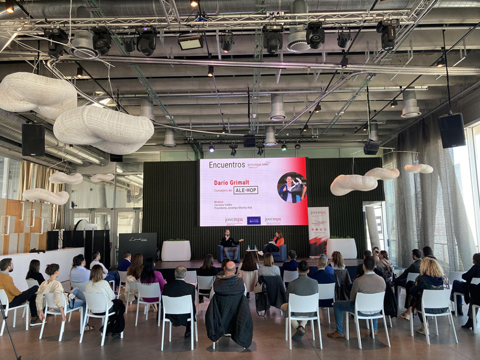 El pasado jueves, la Sala Multiespai L’Androna de Baleària fue testigo de un encuentro inspirador organizado por la Asociación de Jóvenes Empresarios de la Marina Alta (Jovempa). El Consejero de Ale-Hop, Darío Grimalt, protagonizó una nueva edición de los Encuentros Jovempa Talks, donde más de 35 empresarios y empresarias de la provincia tuvieron la oportunidad de sumergirse en el mundo empresarial de la mano de un líder destacado.