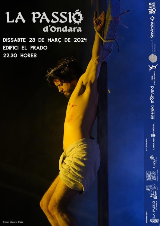 La Pasión se representará el sábado 23 de marzo de 2024 (la víspera de Domingo de Ramos) a las 22:30 horas en diversas localizaciones del núcleo urbano de Ondara (comenzará en el Prado). Este año 2024 se cumple el 30 Aniversario de la representación por primera vez de La Pasión por las calles de Ondara. (En caso de que el tiempo no acompañe, La Pasión no se suspendería, sino que se realizará en el interior del Prado).