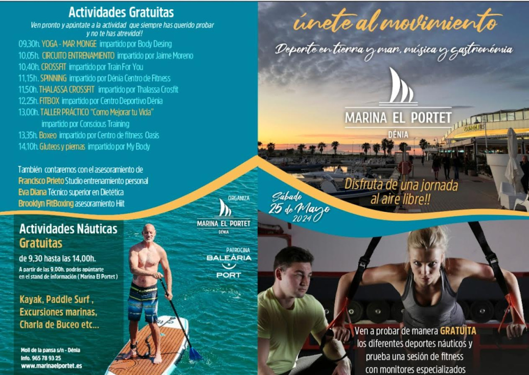 Esta ambiciosa jornada de actividades gratuitas organizada por Marina El Portet cuenta con el patrocinio de Baleària Port y la colaboración de varios gimnasios, entrenadores personales y especialistas en diversas especialidades de Dénia, así como de las empresas instaladas en Marina El Portet.