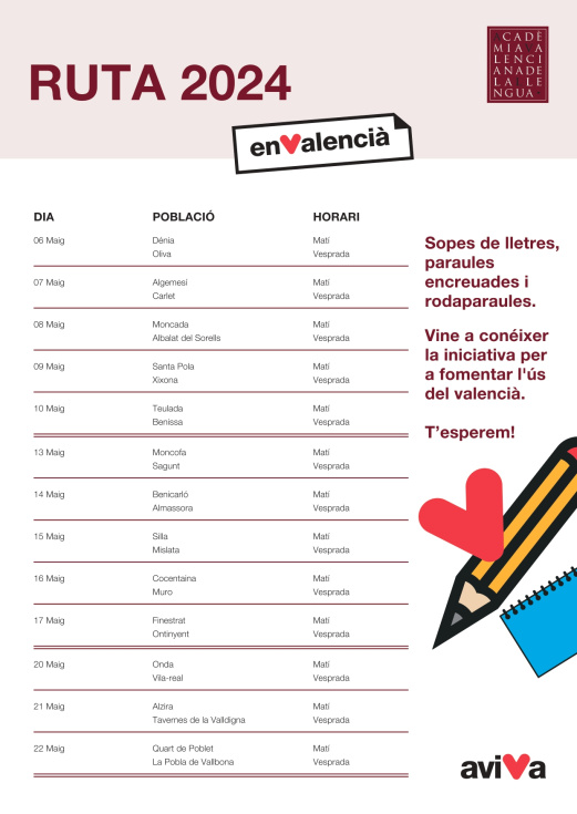 Del 6 al 22 de mayo, el proyecto "En valencià" recorrerá veintiséis poblaciones valencianas para acercar la lengua a los vecinos de una manera divertida y estimulante.