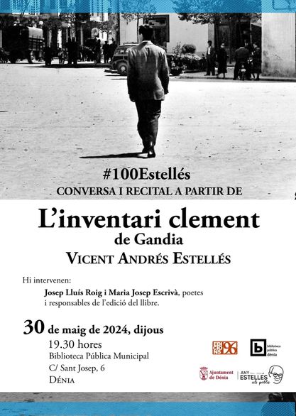 Este jueves, 30 de mayo, la Biblioteca de Dénia será el escenario de un evento cultural significativo: una conversación y recital poético en torno al libro inédito de Vicent Andrés Estellés, "L'inventari clement de Gandia". Este acto contará con la participación de los poetas Josep Lluís Roig y Maria Josep Escrivà, quienes además son los responsables de la edición de esta obra, considerada la auténtica ganadora del Premi Ausiàs March en 1966. La cita es a las 19.30 h.