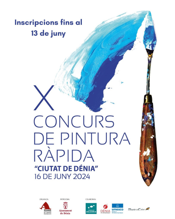 El plazo para inscribirse en la décima edición del Concurso de pintura rápida Ciutat de Dénia, que organiza la Asociación de Artistas de la Marina Alta (ADAMA) con la colaboración del Ajuntament de Dénia, se cierra el jueves 13 de junio de 2024. Las personas interesadas en participar deben enviar un correo electrónico a adama.arte@gmail.com