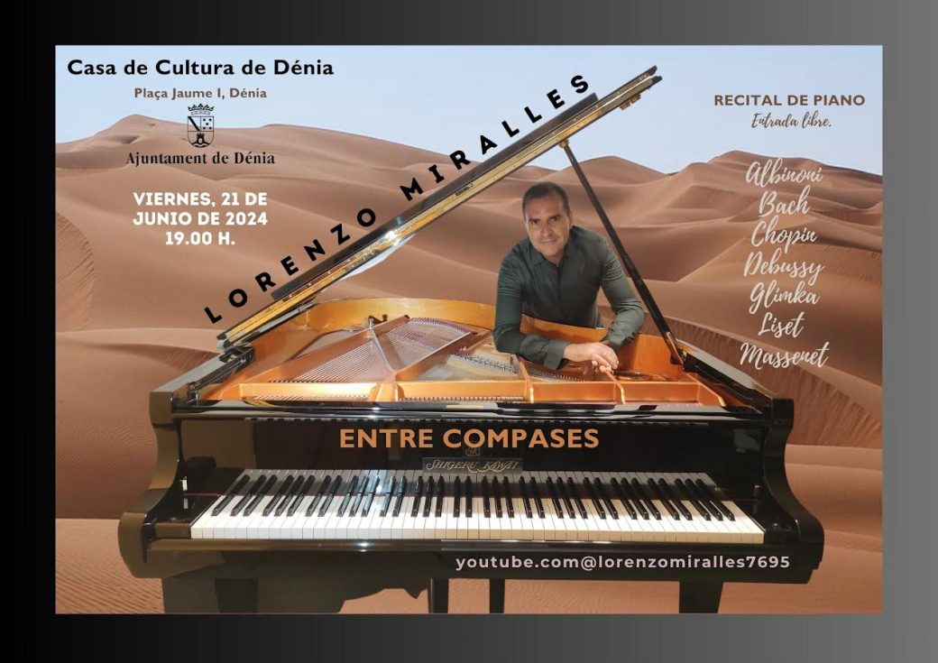 El próximo viernes 21 de junio de 2024, a las 19:00 horas, la Casa de Cultura de Dénia será el escenario de un destacado evento cultural. El reconocido pianista ilicitano, Lorenzo Miralles, ofrecerá un recital de música clásica bajo el título "Entre Compases".