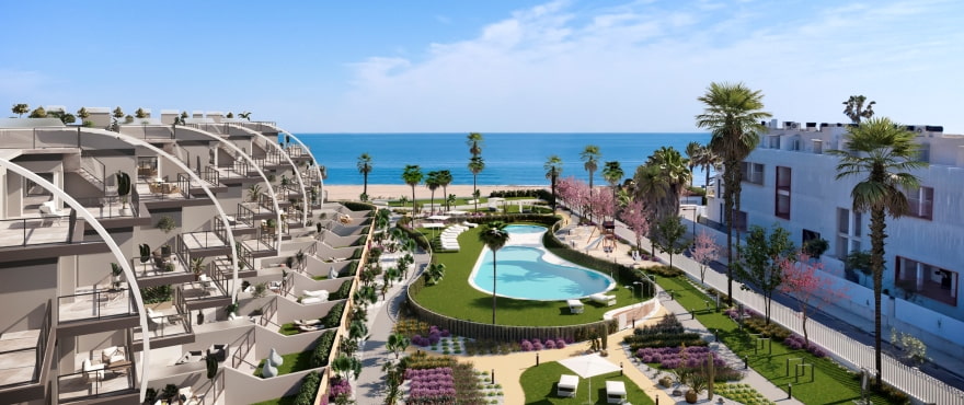 Bella Beach, en Dénia, es otro proyecto relevante, con las últimas tres unidades disponibles. Este conjunto residencial de 62 viviendas ofrece apartamentos de 2 y 3 dormitorios con vistas al mar, integrados en un entorno comunitario con piscinas y jardines. La urbanización, situada a pocos metros de la playa de la Almadraba, ofrece acceso directo a la playa y está cerca de diversos servicios.