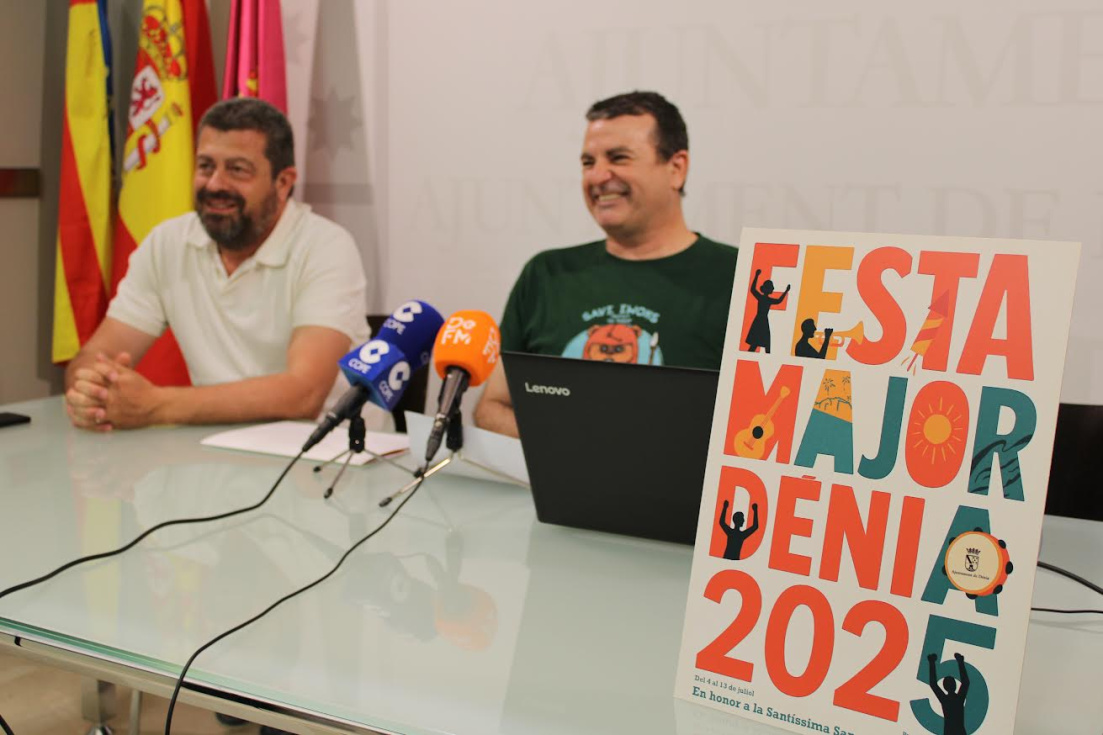 El concejal de Fiestas, Raúl García de la Reina, dio a conocer ayer la programación y el cartel de la Festa Major de Dénia 2025, que se celebrará del 5 al 13 de julio. El cartel es un diseño de la vecina de Dénia Elsa Escobar.