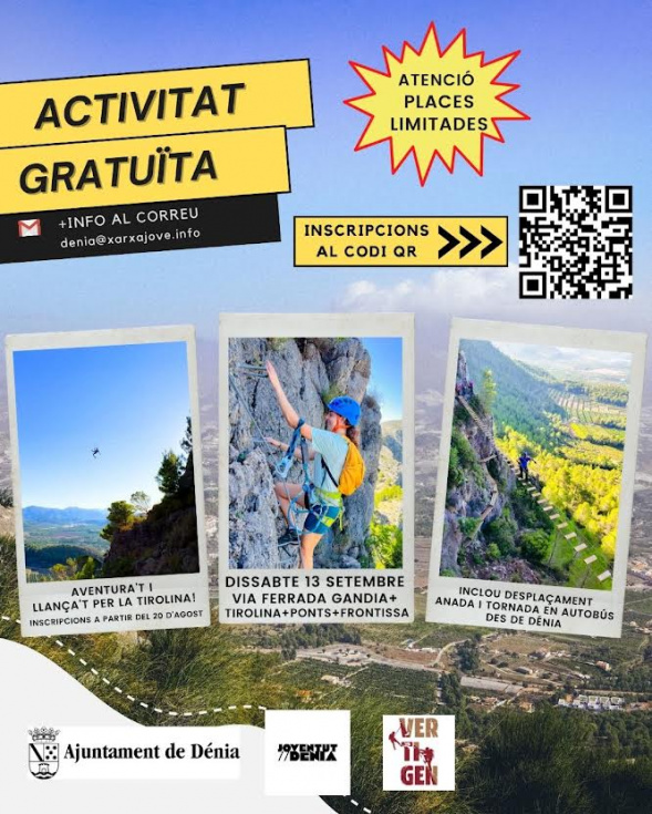 La actividad es gratuita y está dirigida a jóvenes de 12 a 30 años. Incluye el desplazamiento en autobús de ida y vuelta desde Dénia. Las plazas son limitadas y se asignarán por orden de inscripción a través del formulario habilitado en este enlace: inscripciones aquí, disponible a partir del 20 de agosto.