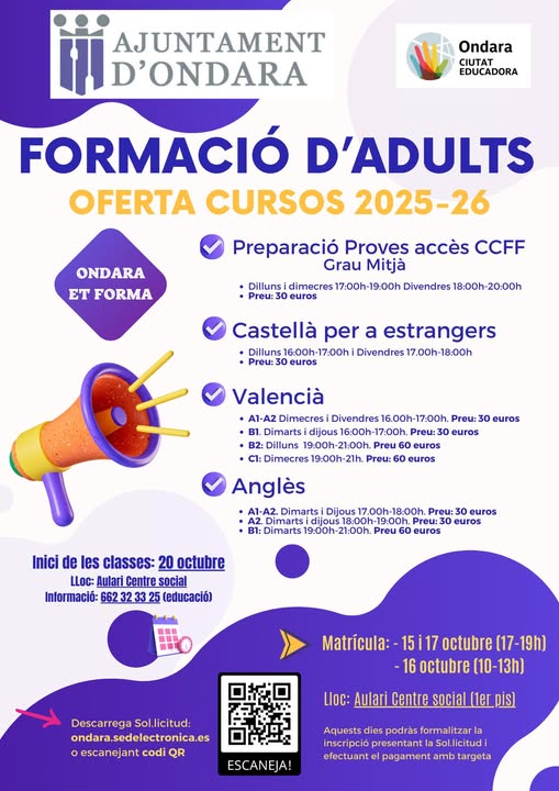 Las personas interesadas pueden obtener más información en la página oficial ondara.sedelectronica.es, llamando al 662 32 32 25 o escaneando el código QR disponible en el cartel informativo.