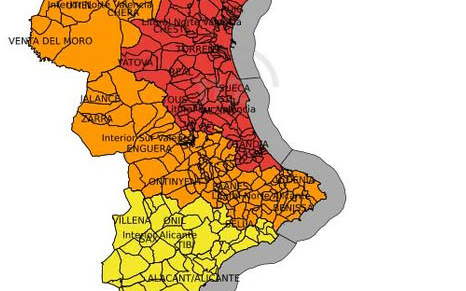 La previsión oficial activa el nivel amarillo este lunes 24 de noviembre en el litoral norte de Alicante, entre las 10:00 y las 21:59 horas.