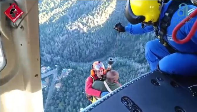 Ante la dificultad del terreno, el Consorcio Provincial de Bomberos movilizó el helicóptero Alpha 01 con el Grupo de Rescate de Montaña (GER). Una vez localizado, el equipo descendió hasta el afectado, lo estabilizó y procedió a su evacuación mediante arnés de seguridad y grúa, una maniobra especialmente delicada en esta zona escarpada.