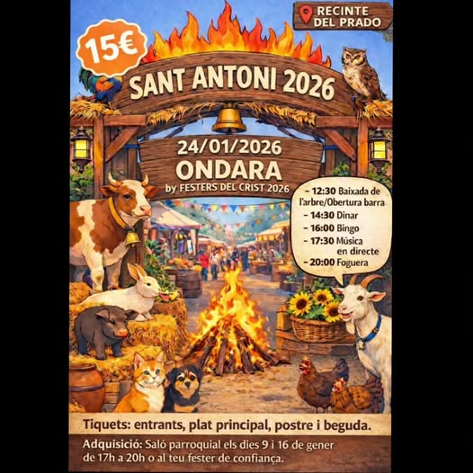 Ondara volverá a vivir una de sus celebraciones más arraigadas con motivo de Sant Antoni 2026, una cita que tendrá lugar el sábado 24 de enero en el Recinte del Prado y que reunirá tradición, gastronomía y ambiente festivo a lo largo de toda la jornada.