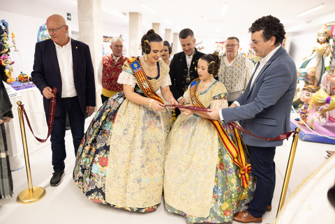 Las Falleras Mayores de Dénia, Paula Argudo y Elia Lull ,descubrieron la creación este fin de semana junto al presidente de JLF, Christian Pellicer, representantes de la entidad creadora, las Cortes de Honor, falleros ejemplares, representantes municipales y los cargos festivos de los once distritos que conforman la fiesta.