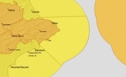 En el caso de la Marina Alta, integrada en el ámbito del norte de la provincia de Alicante, se recomienda a los ayuntamientos y organismos con competencias en emergencias mantener un seguimiento permanente de los avisos oficiales y activar, si procede, sus planes de protección civil con carácter preventivo.