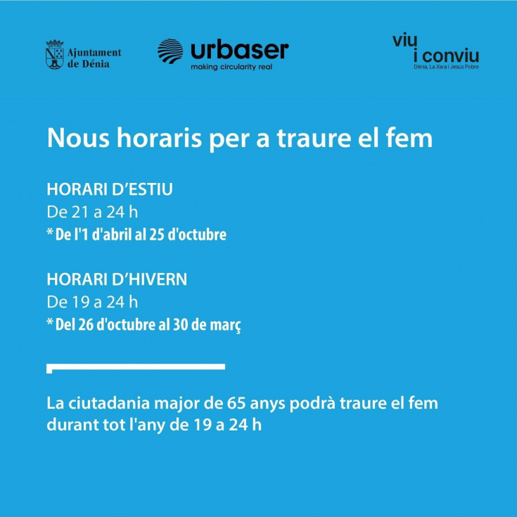 El Ayuntamiento de Dénia ha activado el horario de verano para la recogida de residuos, que estará vigente desde el 1 de abril hasta el 25 de octubre, en línea con lo establecido en la Ordenanza de Limpieza Urbana.