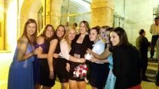 La fallera major de Denia Marina Margalejo i Vives ,la xiqueta Nerea Luque i Triano de la cort d'honor ,acompanyades per Jose Antonio Moya i Martinez Vicepresident de la junta local fallera ,assistiren a la presentació del logo del 50 aniversari de la Falla Districte Saladar.