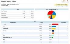 Otros partidos que se presentaron fueron UPyD (149 votos); Ganemos (114); Vox logró 35 votos; el Partido Comunista de los Pueblos de España 28; y Recortes Cero Alicante 28 sufragios.