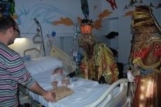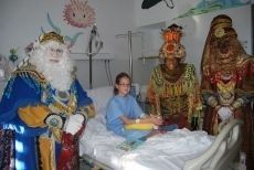 Tras la correspondiente foto de familia, sus majestades de Oriente han subido a la planta de Pediatría, donde han ido contagiando con su magia e ilusión tanto a los niños que permanecen ingresados como a sus familias. La primera en recibir a los Reyes Magos ha sido Patricia, una niña de nueve años, que ha abierto con mucha emoción su regalo. En la habitación colindante estaba Mailem, de sólo seis semanas, y junto a ella su hermana Danna, ansiosa por ver a la comitiva real.