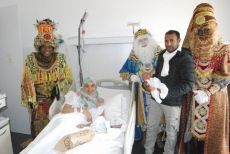 Los Magos han continuado su recorrido en la habitación de Gorka, un niño de dos meses al que acompañaba su abuelo, visiblemente sorprendido ante la aparición de Melchor, Gaspar y Baltasar. Darío, con tan sólo seis días de vida, y Coral, que ha cumplido diez meses, han sido los siguientes en recibir a sus Majestades de Oriente, en compañía de unos padres emocionados y agradecidos. La pequeña Taha, de cuatro semanas, también recibió su correspondiente regalo junto a sus progenitores, que se hicieron con un buen puñado de caramelos.
