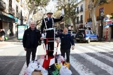 Los agentes de Policía Local retirados Pepe Torró y José Antonio Sevillano volvieron ayer al Quatre Cantons para dirigir el tráfico de la calle Marqués de Campo, como antaño, para recoger productos de limpieza, higiene personal, infantiles y de alimentación que se destinarán a la Mesa Solidaria de Dénia, integrada por la Asociación Extiende tu mano, Ejército de Salvación, Cáritas Interparroquial y Cruz Roja.
