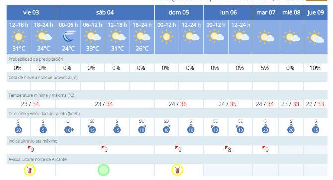 Aemet emite aviso especial por altas temperaturas la tarde del viernes y el domingo