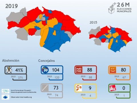 Podemos logró 805 votos, lo que representa el 4,94% por ciento de los votos. Un fuerte golpe, ya que en 2015, la marca blanca con la que se presentó la formación, Cambiem Entre Tots, en la que estaba el propio Rodenkirchen logró el 8,97% y 1593 sufragios recibidos.