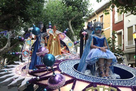 La carroza Wonkaliciós, de los atistas Miguel Ivars i Sergio García se alzó este sábado por la noche con el primer premio del Gran Desfile de Carrozas de las fiestas de Dénia. Esta obra artesanal sumó 239 del jurado y se alzó así con el banderín de primer premio de esta edición.