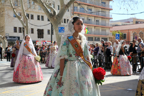 Búscate en la ofrenda de flores de las fallas de Dénia